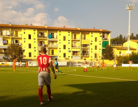 Il match non è spettacolare e la Rondinella passa due volte alle prime vere occasioni. Al 22′ sul tiro di Santini è determinante la deviazione fortuita di Migliorini che spiazza Fattori.