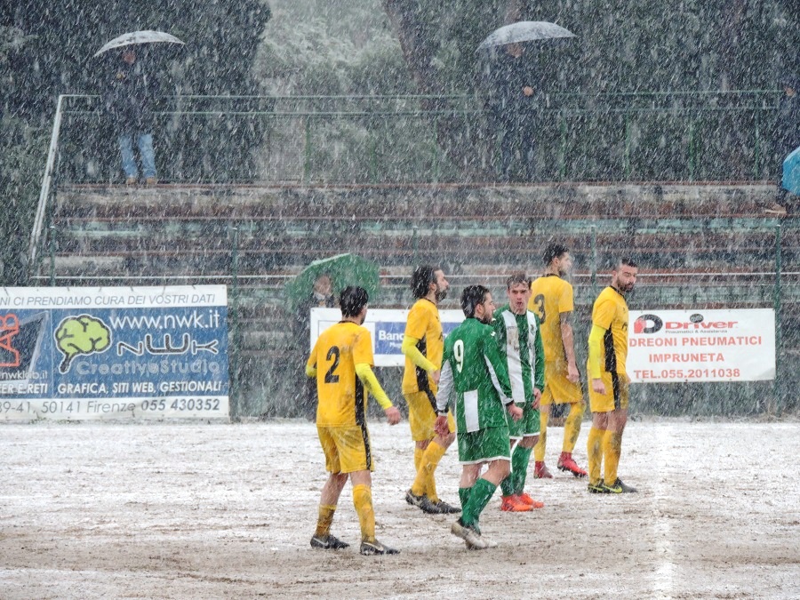 IMPRUNETA – Allo stadio comunale dei Pini di Impruneta, sotto un’intensa nevicata, contro ogni pronostico, la Lanciotto supera l’Atletico Impruneta con un rotondo 3-1 dei quarti di coppa Toscana.