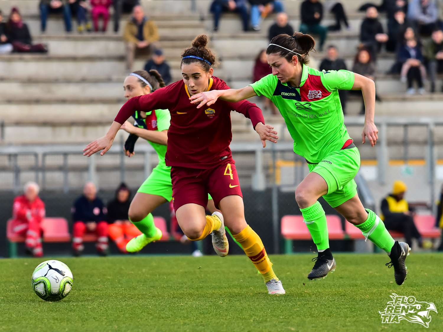 Le giallorosse manovrano molto il pallone, la Florentia si difende bene, ma non riesce a ripartire con cattiveria in contropiede. Sul finire del primo tempo si segnalano due conclusioni di Greggi e normale amministrazione per Marchitelli.