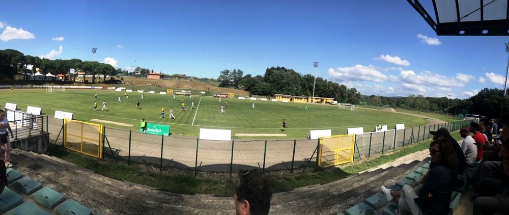 A centrocampo Zagaglioni centrale e Tetteh mezzo destro non paiono proprio a loro agio nei rispettivi ruoli (entrambi verranno ammoniti nella prima frazione di gioco). Il più in palla a centrocampo sembra Gemignani, mezzo sinistro e continuo negli inserimenti offensivi.