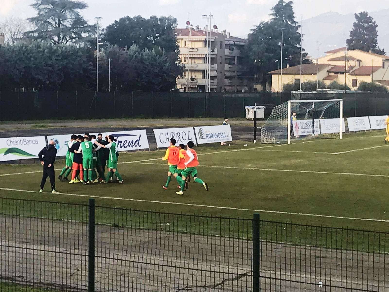 L'esultanza del San Donato Tavarnelle dopo il gol del pareggio di Vieri Regoli