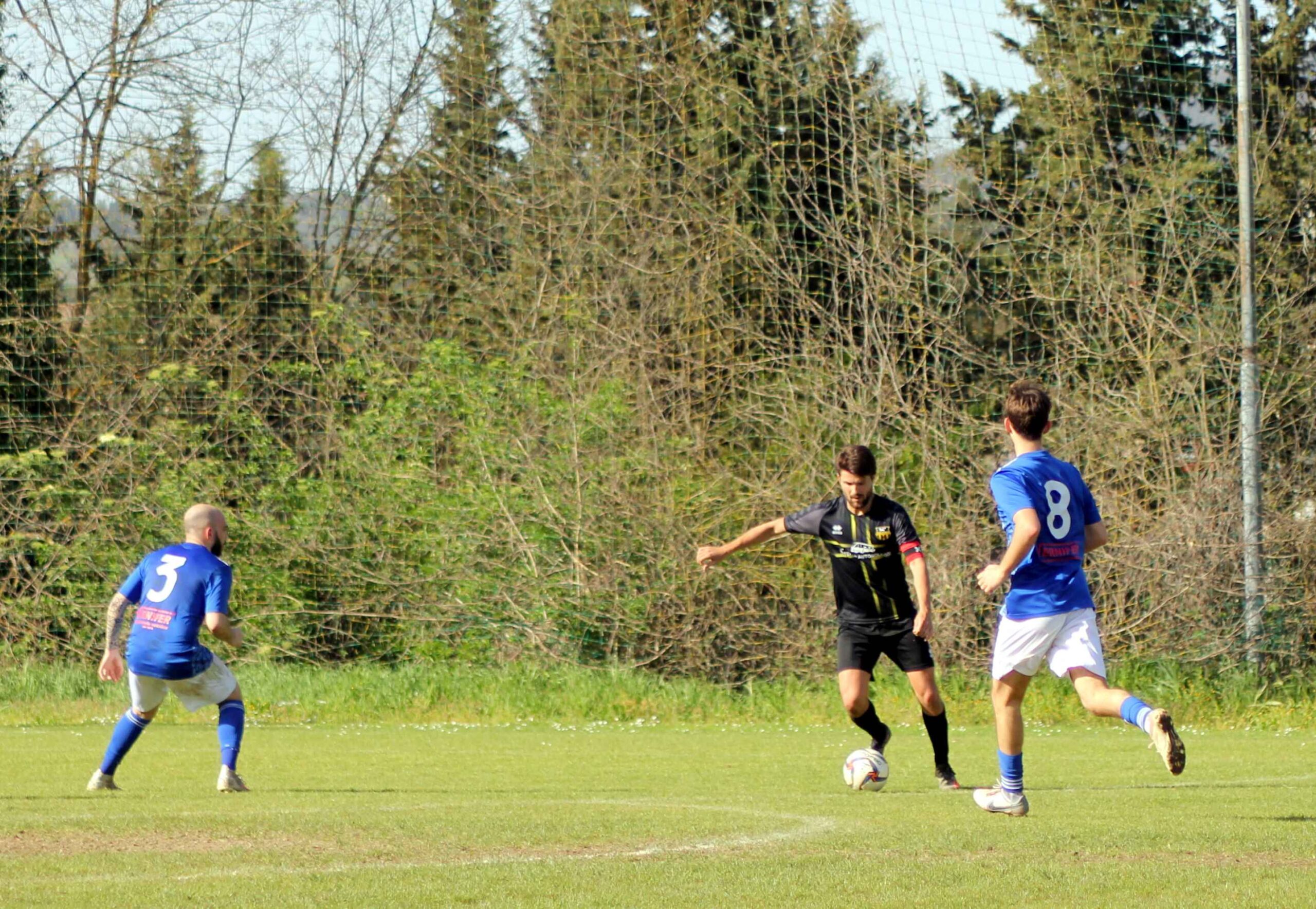 Basta il primo tempo ai gialloblù per mettere già al sicuro il risultato, grazie a una doppietta di Gimignani: l’attaccante locale prima infila al volo dopo un rimpallo su prima conclusione di Svelti, quindi raddoppia con un controllo di destro e conclusione di sinistro su bell’invito del giovane Camiciottoli.