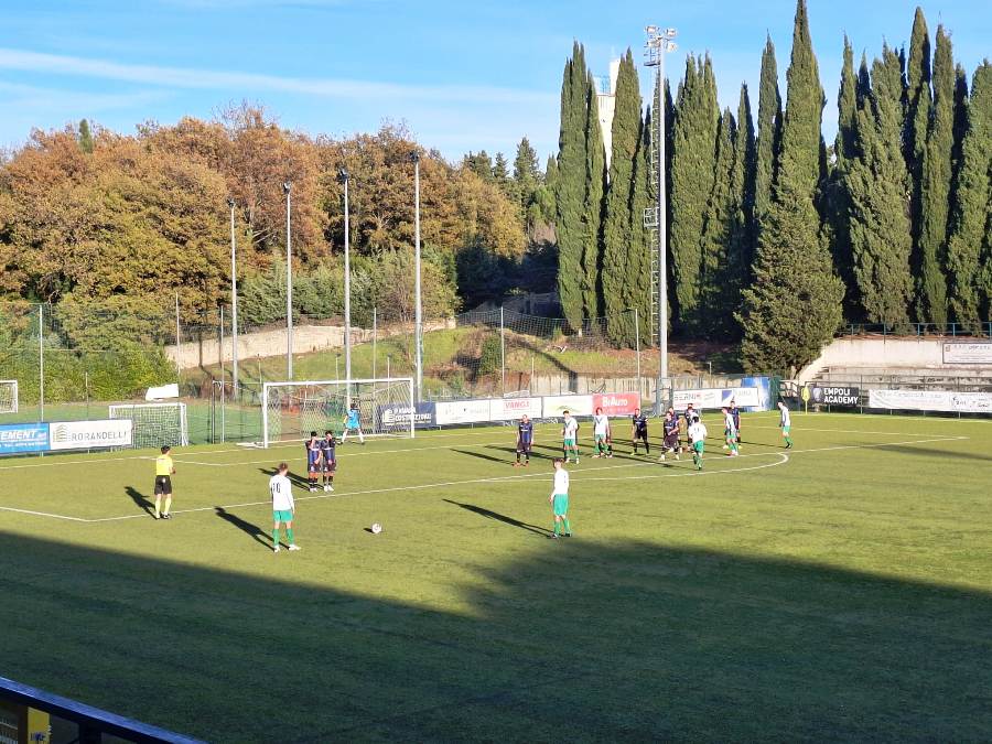 Risponde però la Sancascianese, che pochi minuti più tardi sfonda sulla sinistra con Casini P. che passa l’uomo anche grazie ad un rimpallo prima di scaricare su Lumachi, che arriva in corsa e calcia col mancino: alto.