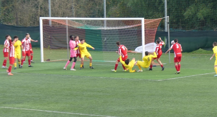 Subito pronta la reazione del Galluzzo che al 13′ raggiunge il pareggio: calcio d’angolo, svetta di testa Chiavacci e mette in rete.