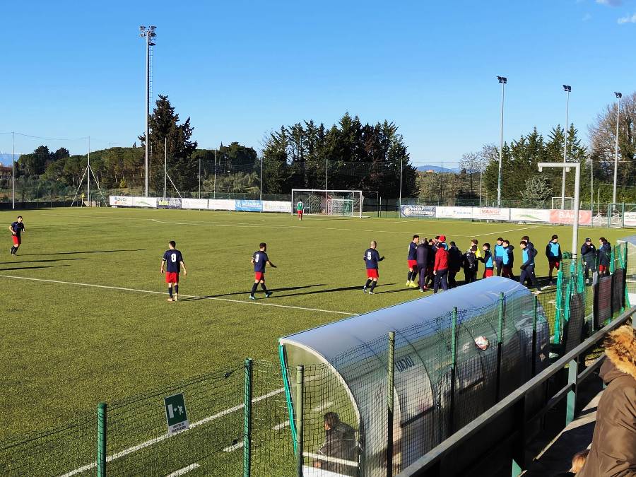 Nel finale di primo tempo la Sancascianese prova a farsi vedere con un tiro da fuori area di Magistri, il più attivo tra i gialloverdi, ma la conclusione viene strozzata e finisce tra le braccia di Campinotti.