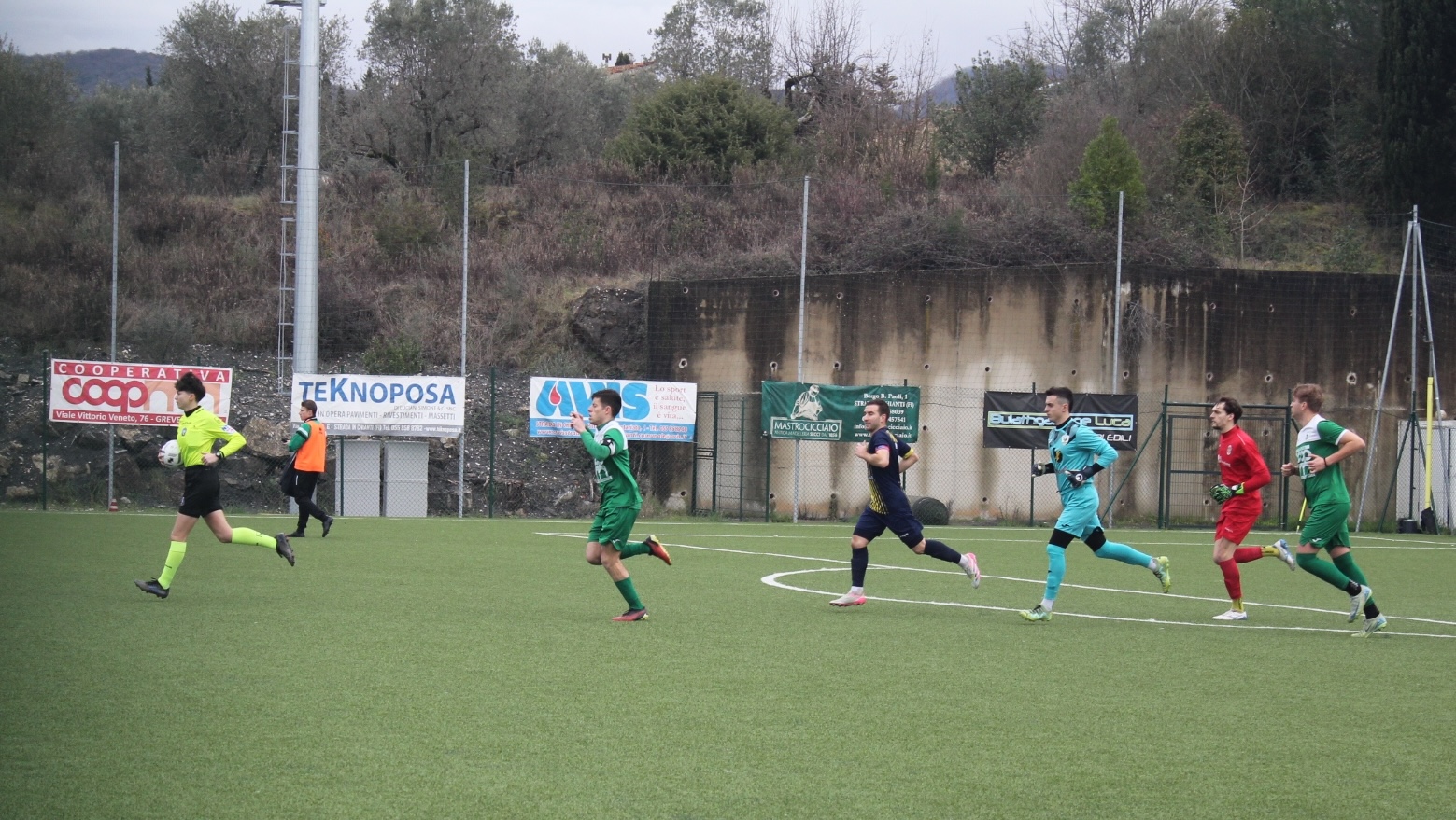 I biancoverdi crescono e aumentano i ritmi: al 61′ sul cross del neoentrato Farcas, Aiello di testa non ci arriva per un soffio. Ma al 62′ è vantaggio Chianti Nord: su un pallone in verticale lo stesso Aiello calibra perfettamente il pallonetto su Bettoni e un difensore riesce a respingere solo quando il pallone ha ormai varcato la linea di porta (almeno a giudizio della direttrice di gara).
