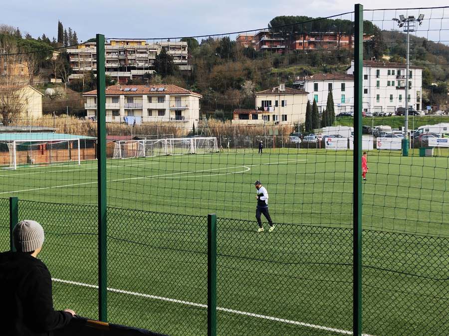 La sfera gira da sinistra a destra e finisce sul lato dell’area ospite. Lotti controlla e con un tocco supera Tongiani. Il capitano biancoazzurro alza la testa e crossa sul secondo palo. La palla prende una traiettoria strana, supera Minò e si va a infilare sotto la traversa dal lato opposto per il vantaggio locale.