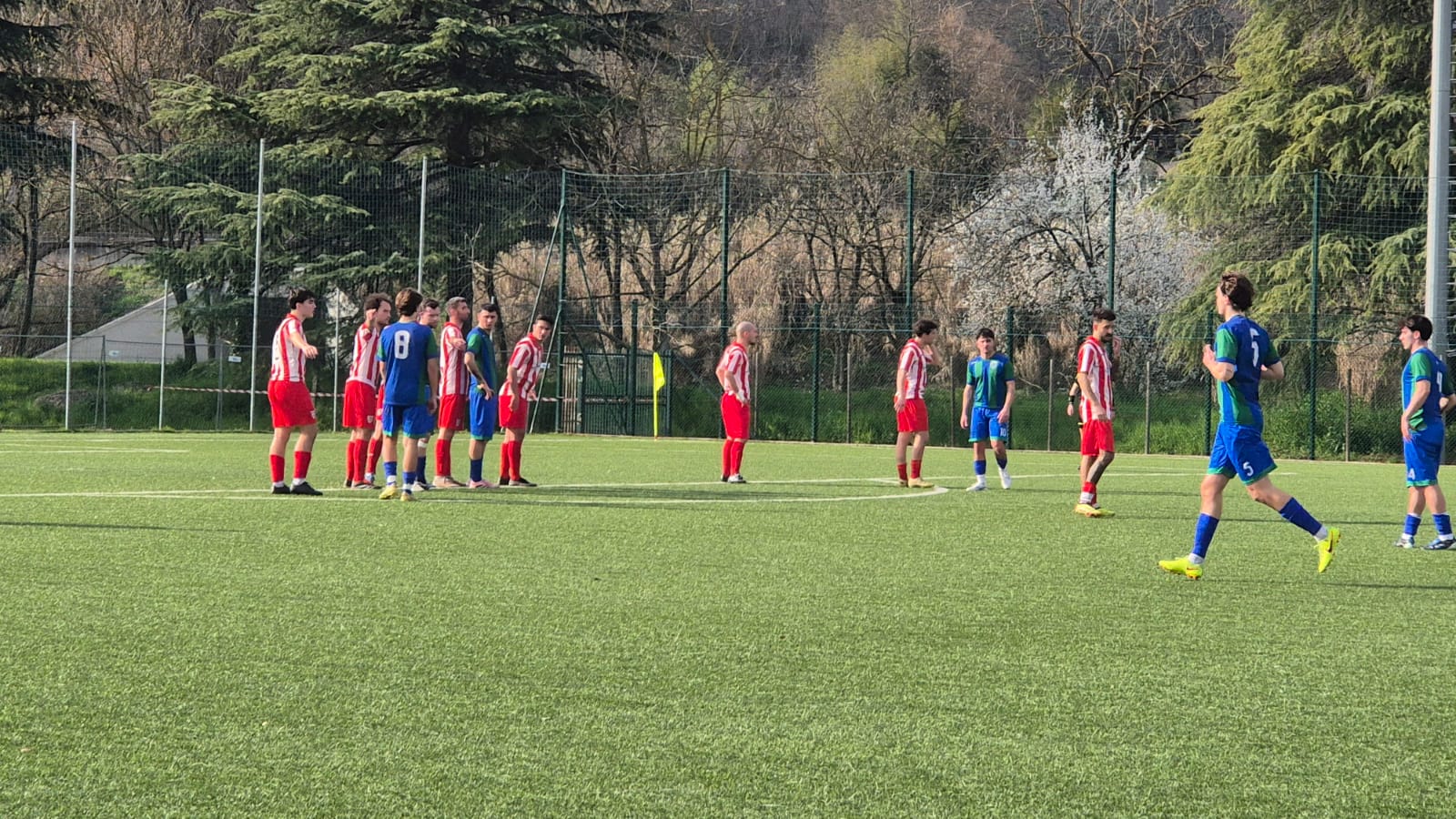 Reazione immediata dei biancorossi che al 25′ pareggiano con il colpo di testa di Nasa.